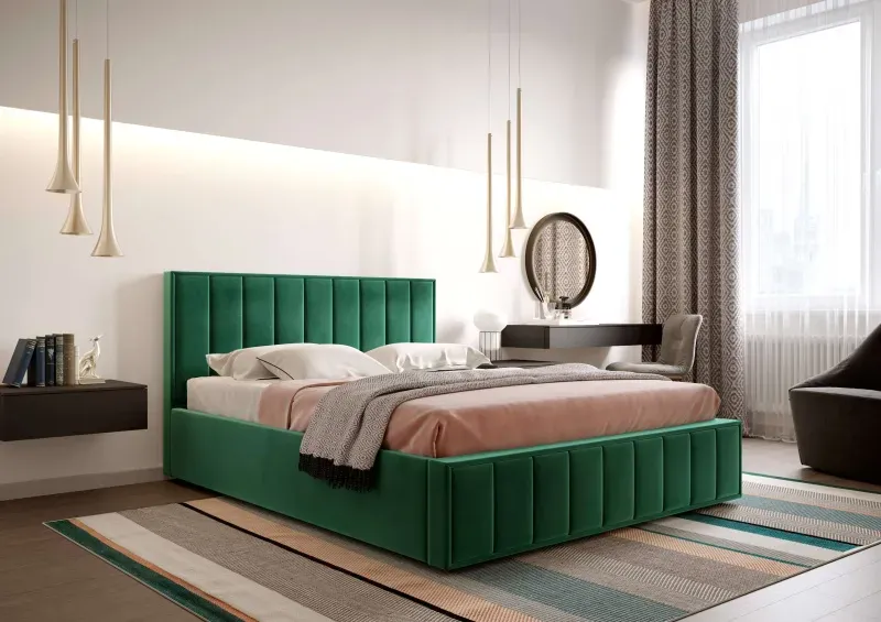 Выбор оттенка стоит привязать к двум вещам — естественному свету и площади. В темной комнате безопаснее начинать с более светлых, «припыленных» зеленых: шалфей, фисташка, мягкая олива. Они дают ощущение воздуха даже при умеренной освещенности. В хорошо освещенной спальне легче раскрываются глубокие оттенки — малахит, хвойный, изумрудный, бутылочный.